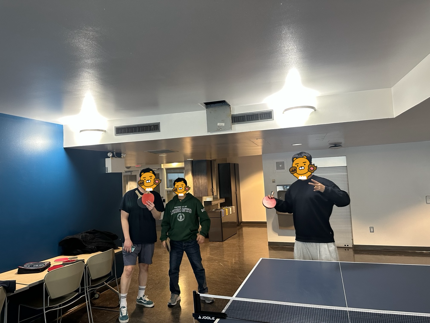 여기에서는 탁구, 보드게임, 포켓볼 등을 무료로 할 수 있어서 온김에 2:2로 나눠서 해주었답니다.