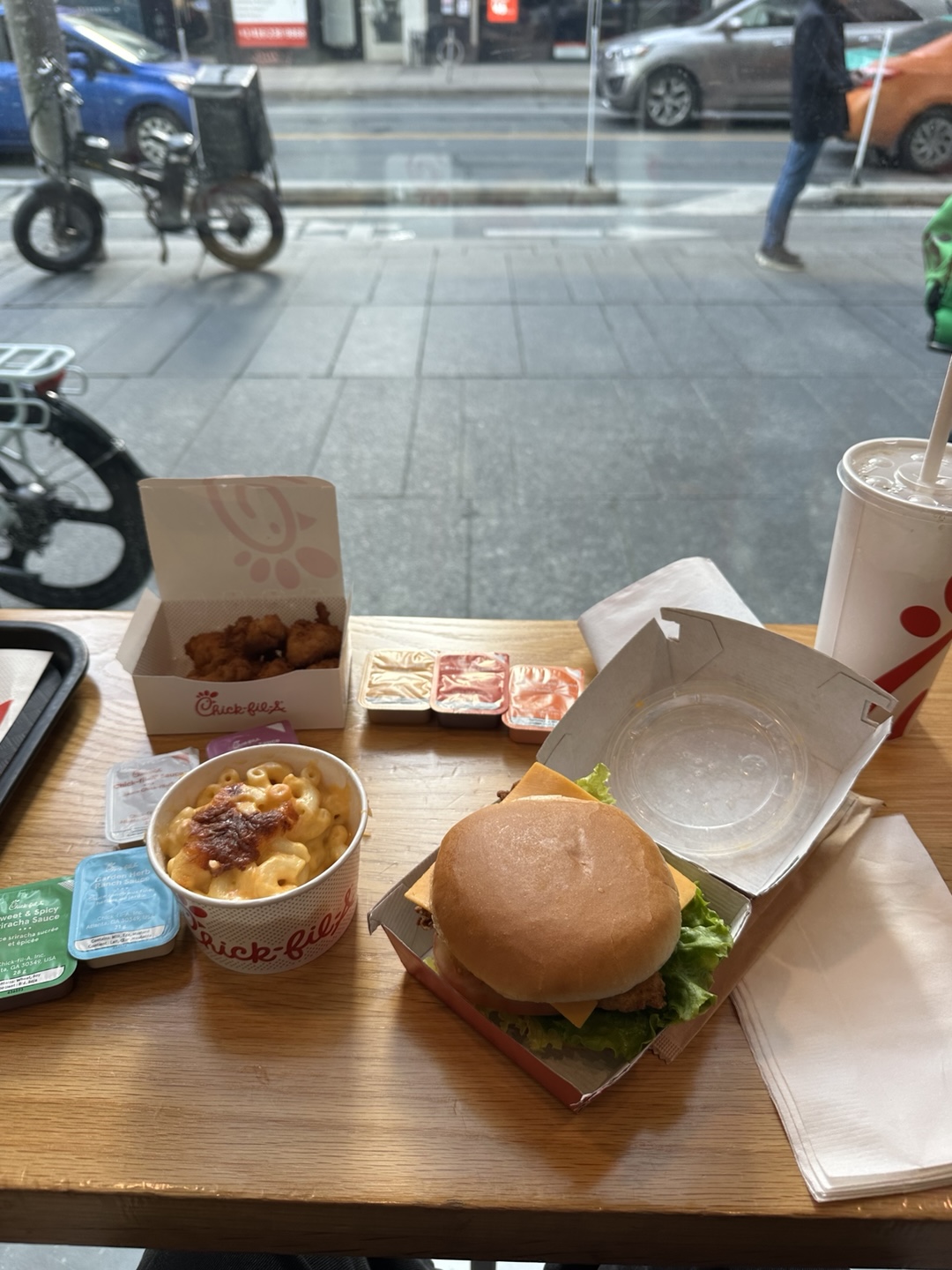 밥도 먹으려 했는데 사람이 많고 먹고 싶은게 없어서 단탄으로 돌아와서 칙필레를 방문해주었답니다.