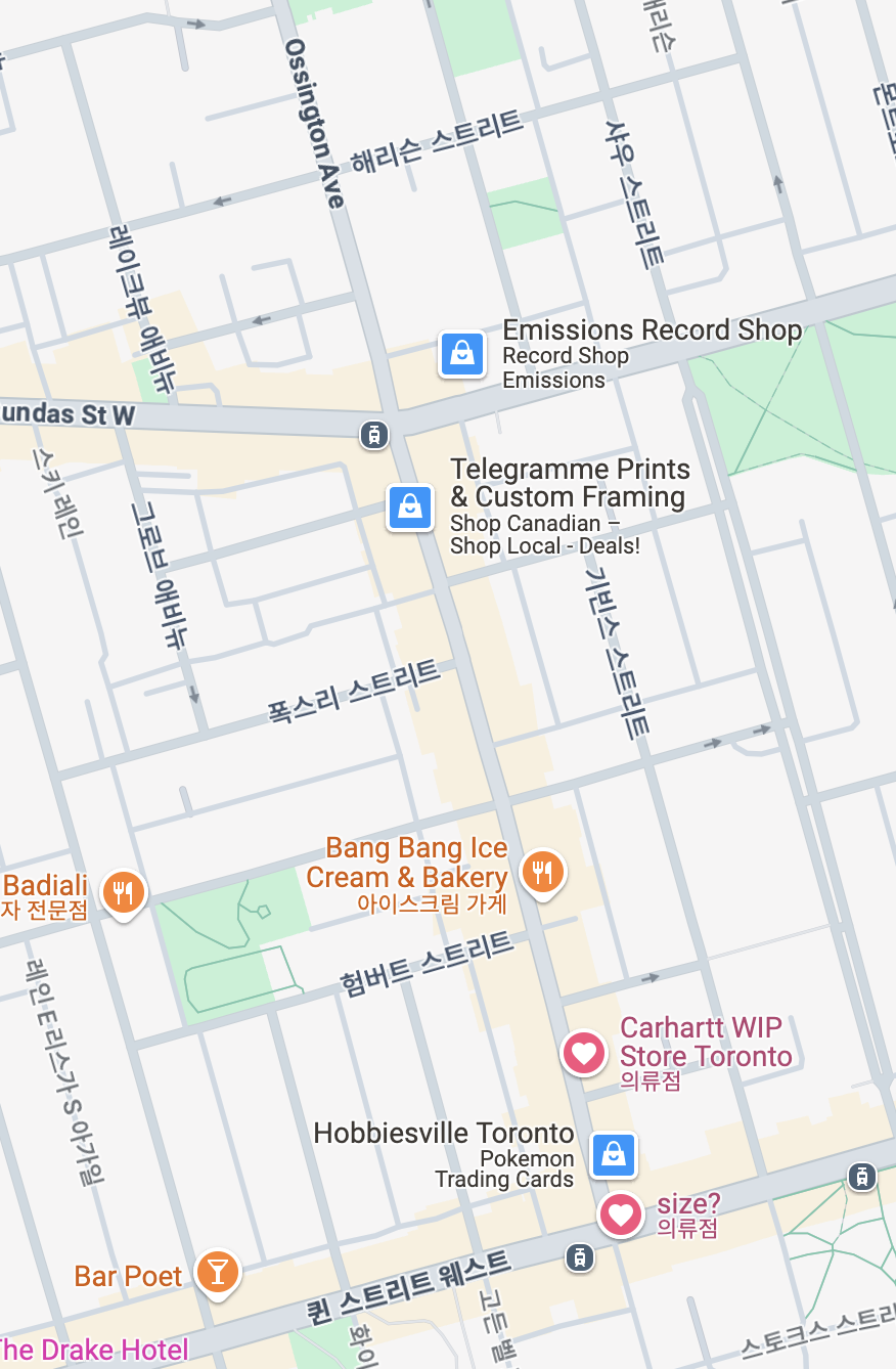 제가 방문할 매장은 'Size?' 라는 곳인데요. Ossington Ave에 위치해있어요.