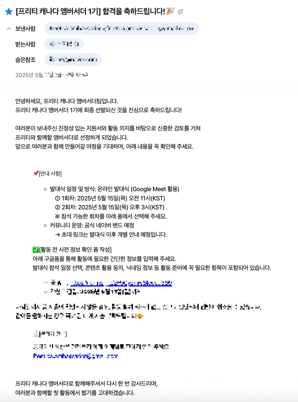 이상 지금까지 프리티 캐나다 엠버서더 지원 및 웰컴 래디팩 후기를 적어보았구요!