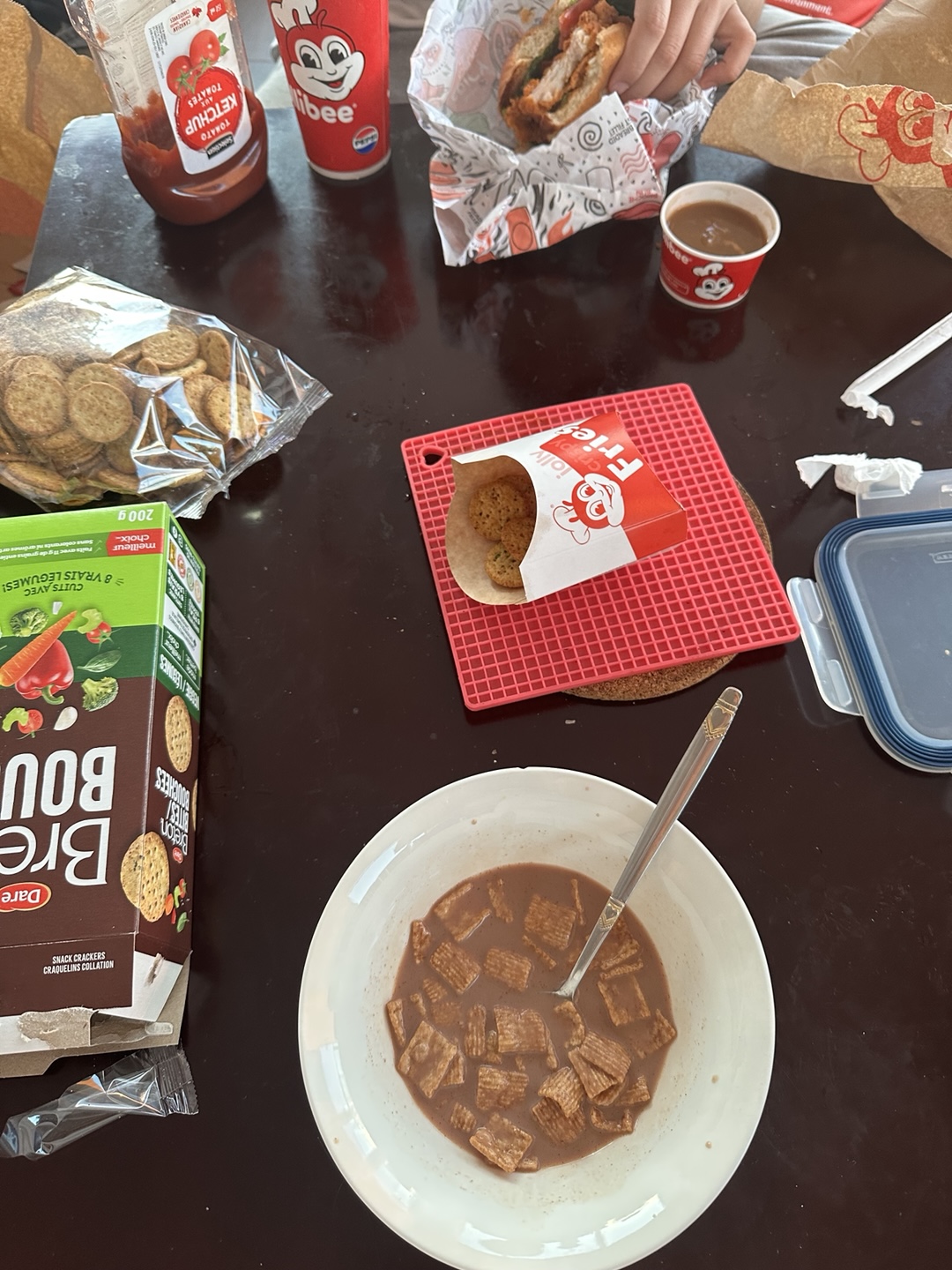 많이 먹고 왔음에도? 입이 심심하여.. 햄버거 먹는 CVPR 동생 앞에서 시리얼과 과자를 먹어줍니다.