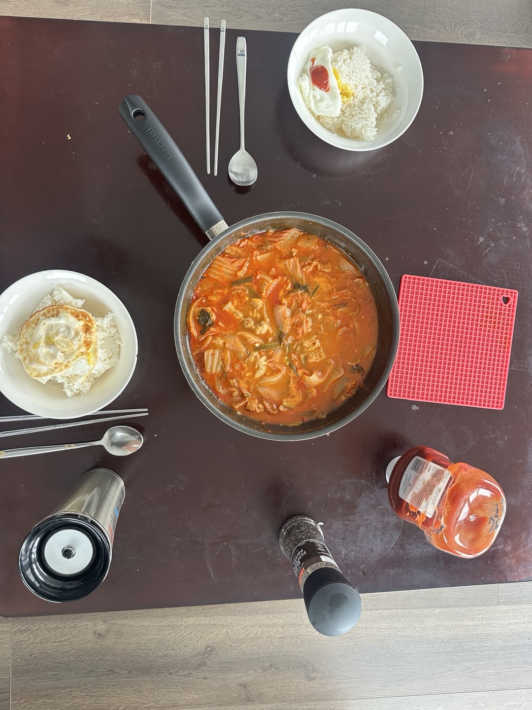 어제 먹다가 남은 김치찌개가 있어서 전박사 동생과 먹어주었어요!