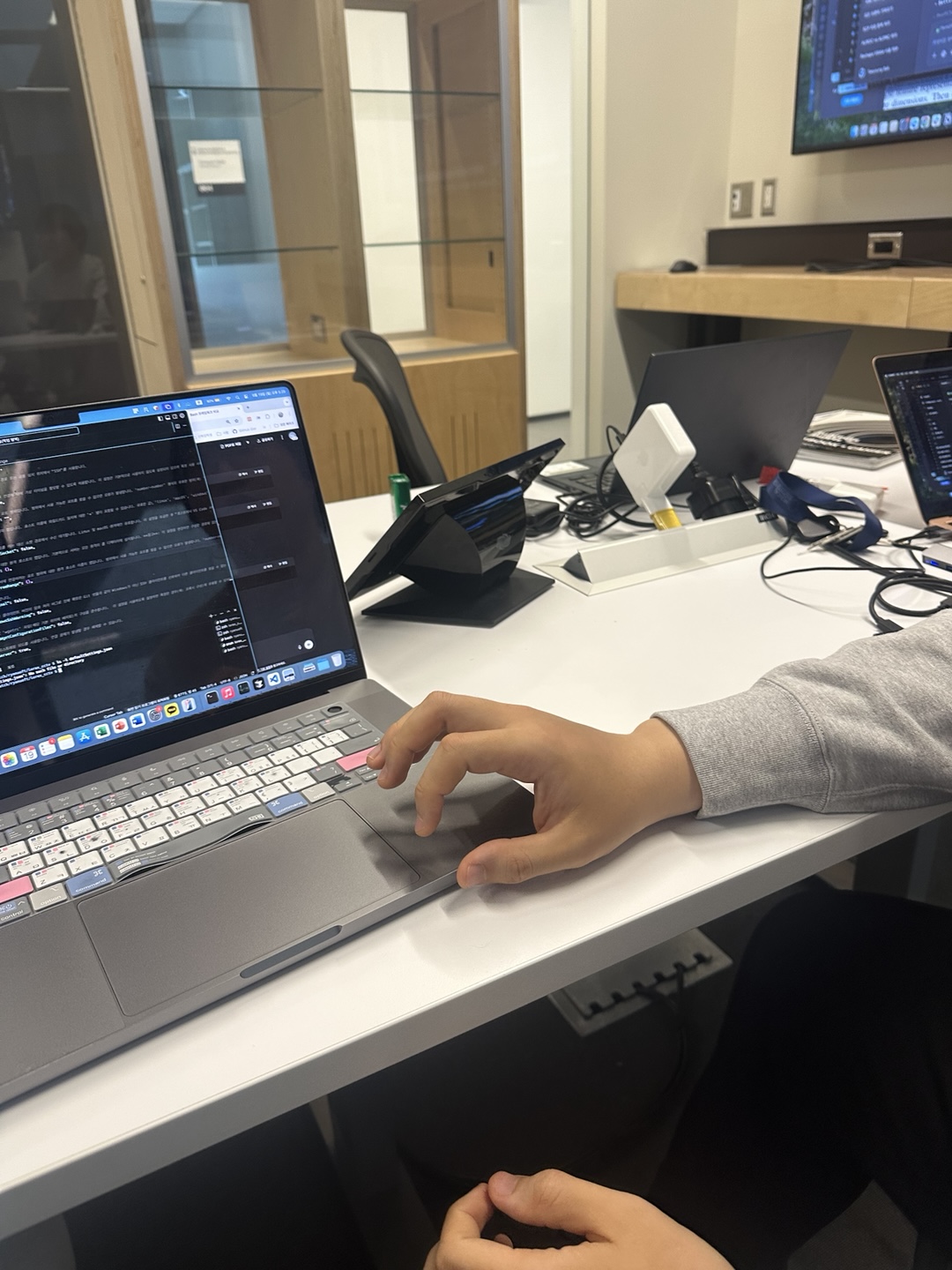 스티치가 큰 전광판에 보여서 찍어보았습니다.