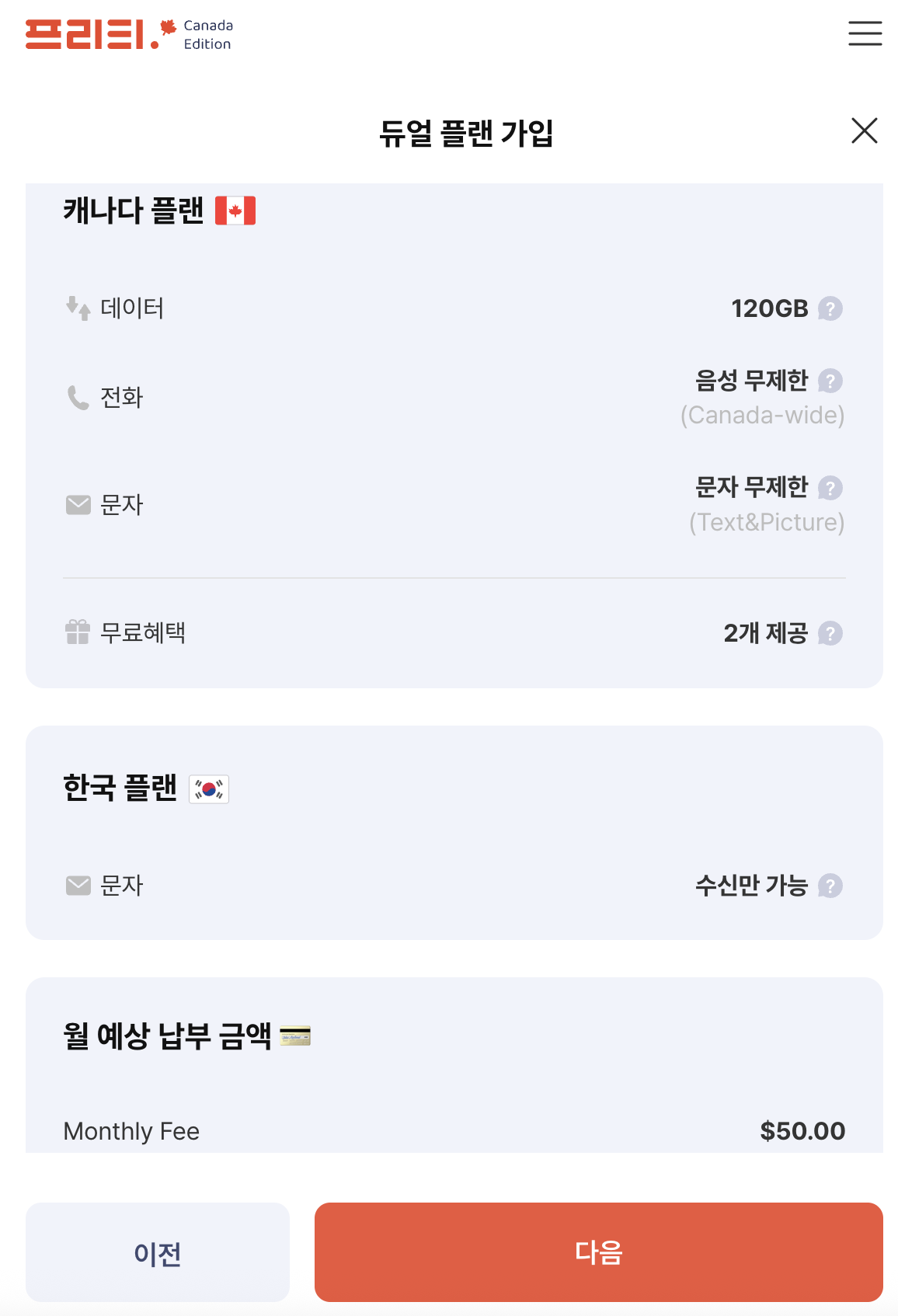 지난번에는 유심 구매기로 작성했다면 오늘은 정식 런칭 전에 먼저 사용해본 '프리티 캐나다 듀얼플랜'에 대해 적어보려 합니다!