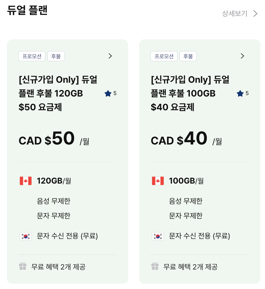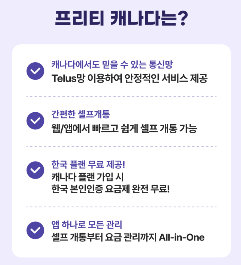 - 캐나다 플랜 가입 시 한국 본인인증 요금제 완전 무료 (기존에는 한국 통신사에 매달 지급했던 비용을 Save!)