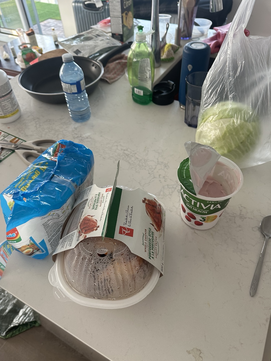 홀세일 마트에서 통닭과 요거트, 라면, 배추를 사왔어요!