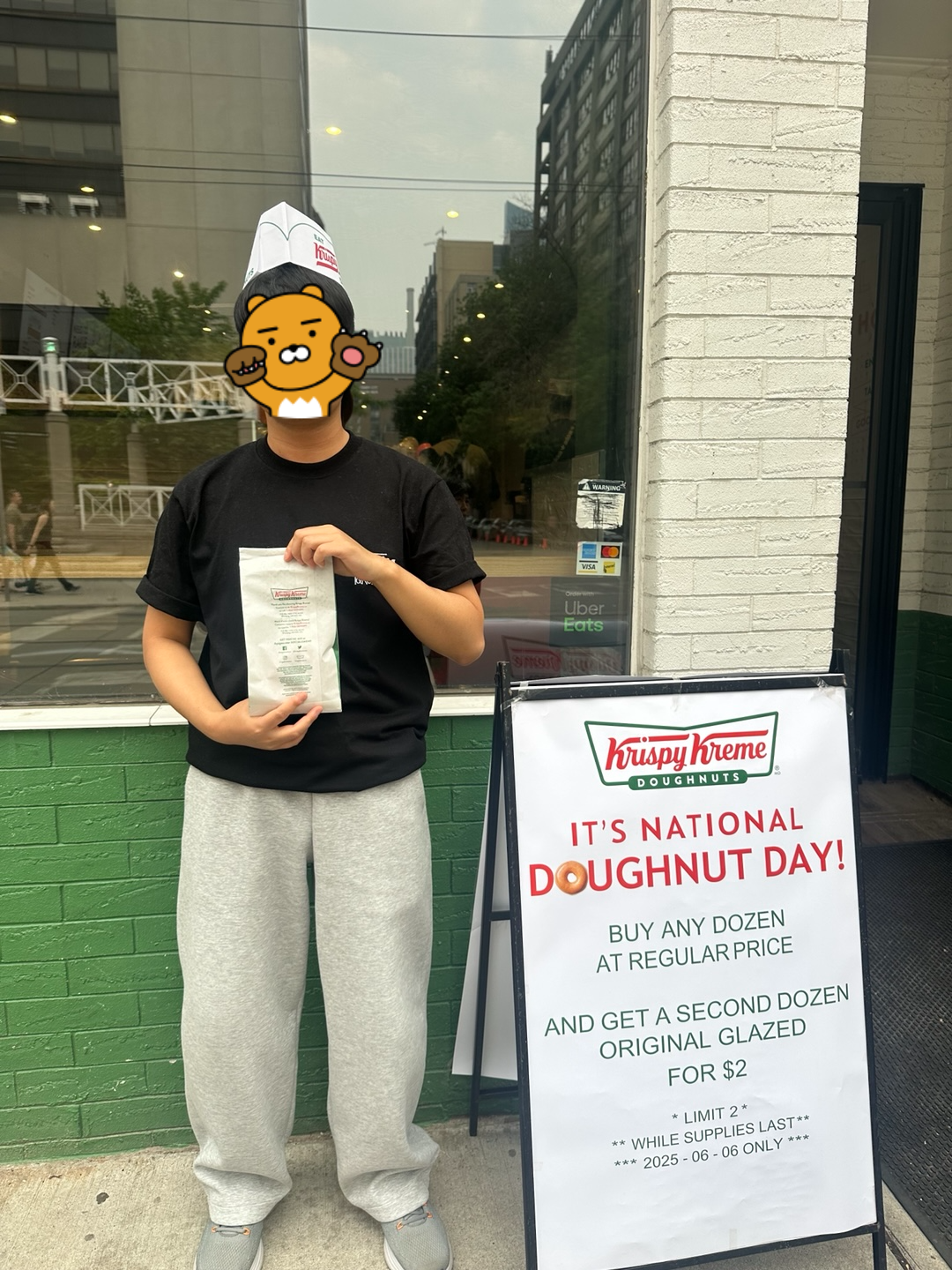 오늘은 National Doughnut day라서 도넛 1개가 공짜입니다.