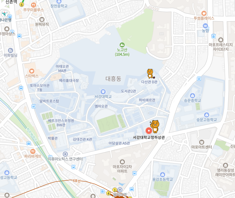 정하상관은 신촌역(2호선) 6번출구로 나오셔도 되지만 대흥역(6호선) 1번 출구로 나오셔서 가시는게 가장 빠릅니다.
