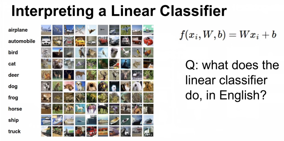 Linear Classifier를 해석하는 또다른 방식은 "공간"이 있고,