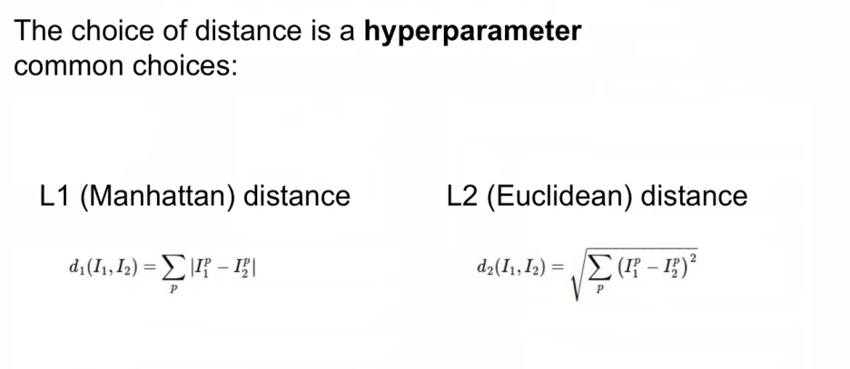 L2 distance도 존재한다. 어떤 것을 사용할 것인지는 하나의 hyperparameter