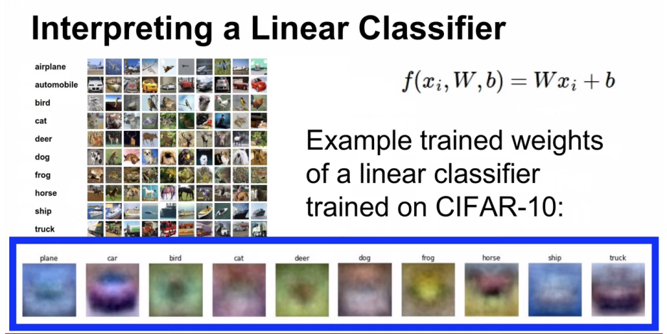 Color가 매우 중요하다고 했는데, 여기서 보면 학습한 가중치들(Linear Classifier)을 시각적으로 표현을 해보니