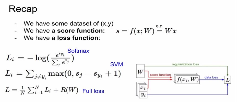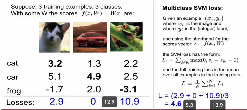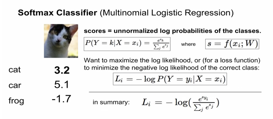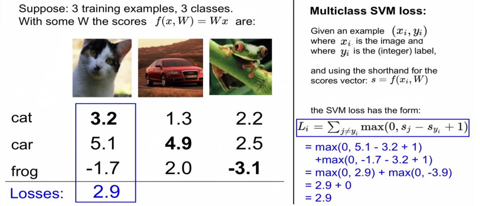 xi : 이미지, yi : label, score vector : s = f(xi, W)
