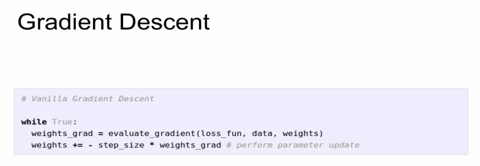 gradient 값만큼 weights를 감소시켜야 하기에 step_size 앞에 - 부호가 생긴다.