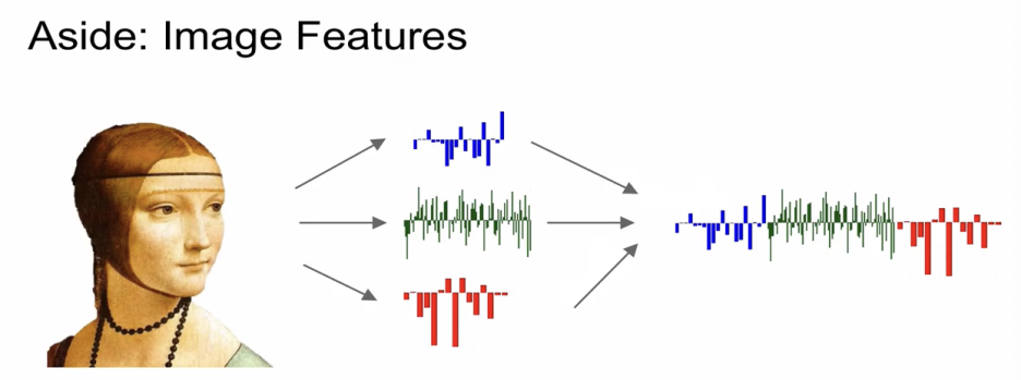 - 추출한 여러개의 feature들을 giant column vector처럼 이어주고 linear classifier에 적용.