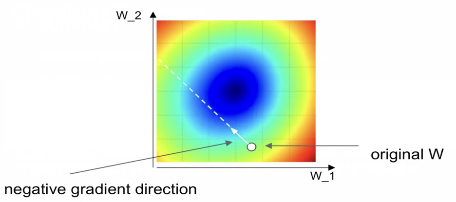 original W가 있을 때 음의 gradient direction으로 이동하면서 최적화를 해나가는게 gradient descent가 된다.