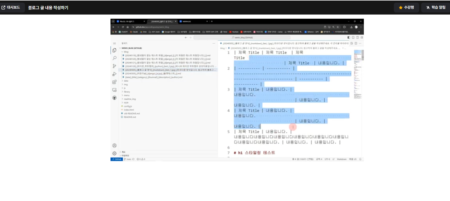 저는 그 중에서 무료 강좌인 "3분만에 만드는 깃헙 블로그"를 수강해보았는데 유료강의처럼 훌륭한 강의 내용이었습니다!