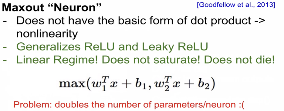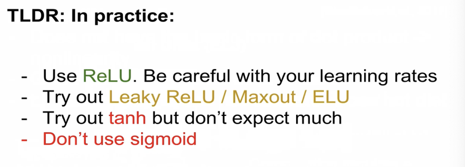 실험이 필요하면 Leaky ReLU / Maxout / ELU