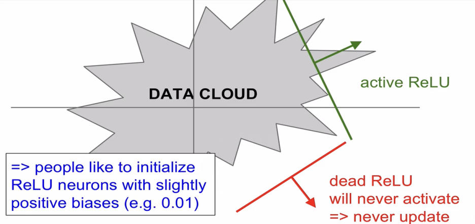 뉴런이 데이터 클라우드 내에서 activation 된 경우에는 active ReLU