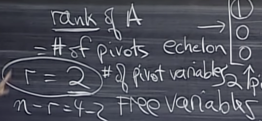 따라서, n-r인 column 4에서 rank 2를 빼면 최종 free variable은 2가 된다.