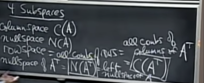 오늘은 MIT Gilbert Strang 교수님의 Linear algebra 10강 four fundamental subspaces에 대해 학습하겠습니다.