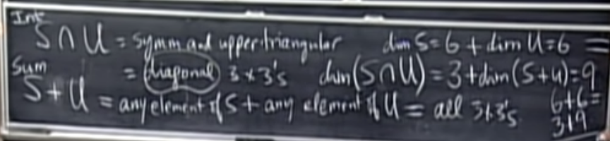 S + U = M (but, 대칭행렬과 상삼각행렬의 합집합은? NO)