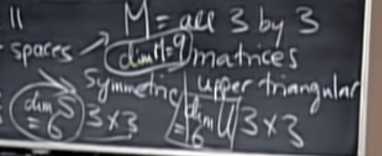 대칭행렬 S의 부분공간은 차원 6을 갖는다. 차원이 6이기에 기저(Basis)도 6이다.