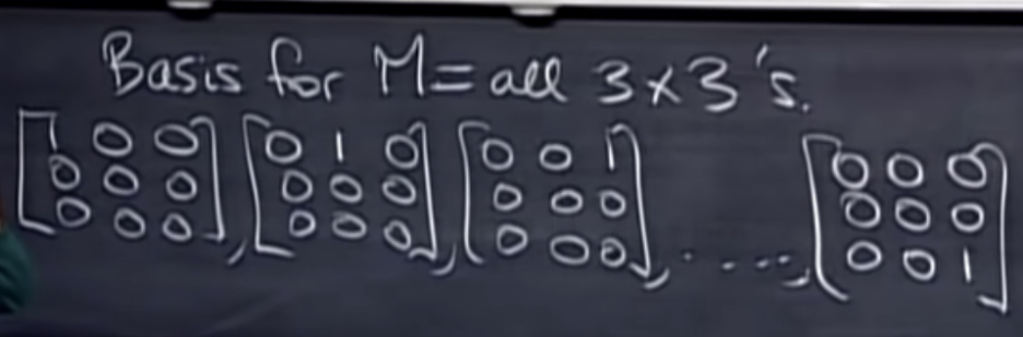 M의 차원(Dimension)은 9이며, 기저(Basis)도 9이다.