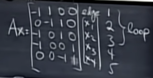 Vector x의 성분 xi가 그래프의 노드 i에서 전기전압(electrical potential) 관점으로 설명한다면, Ax는 그래프의 각 노드에서 전압(potential)의 차이를 설명하는 vector이다.