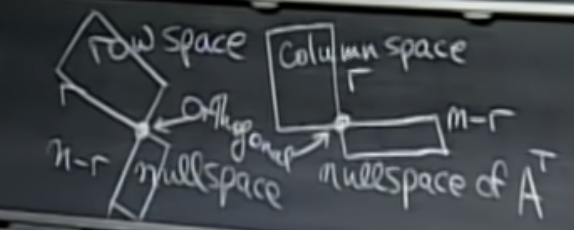The “big picture” of this course is that the row space of a matrix’ is orthogonal to its nullspace, and its column space is orthogonal to its left nullspace.