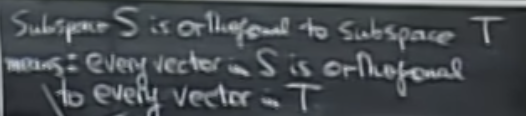 Subspace S is orthogonal to subspace T means: every vector in S is orthogonal to every vector in T.