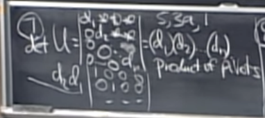 7. triangular행렬의 행렬식은 diagonal의 곱이다.단, di의 요소 중 하나가 0이면 소겁버을 사용하여 대각행렬을 얻을 수 없다.