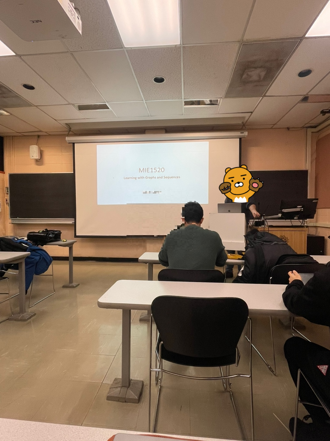 3시간 짜리 강의였으므로 2번 쉬는 시간이 있었습니다. 쉬는 시간 중간에 한국인 석사과정 학생이랑 간단히 담소를 나누었어요.