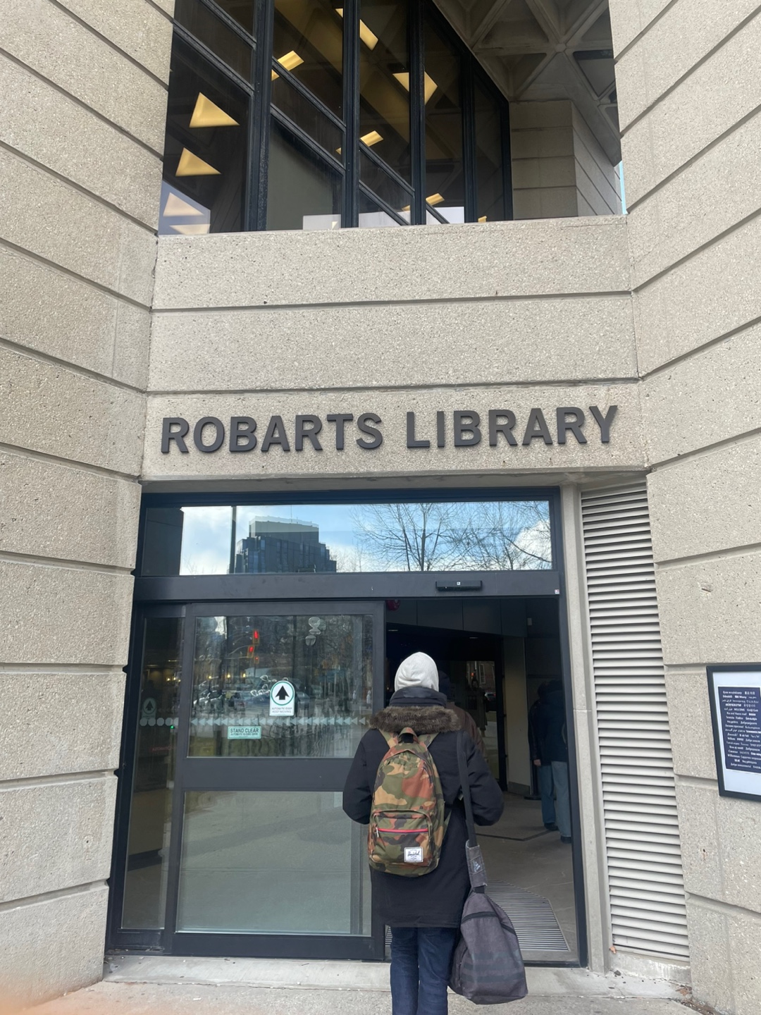 나와서 왼쪽으로 3분? 만 걸어가면 로버츠 도서관이 나옵니다.