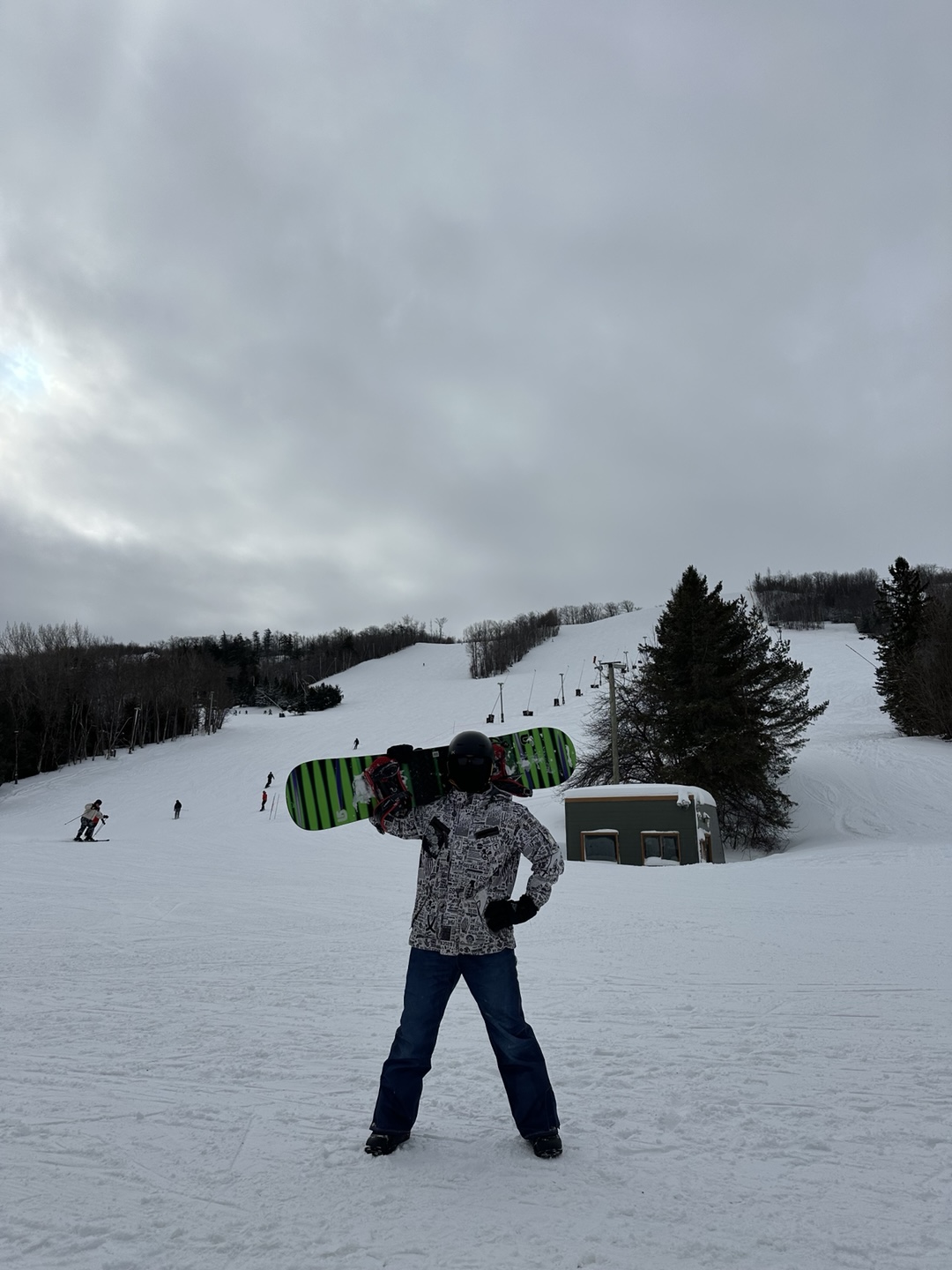렌트한 헬멧, 상하의, 보드 그리고 룸메이트한테 빌린 장갑까지!