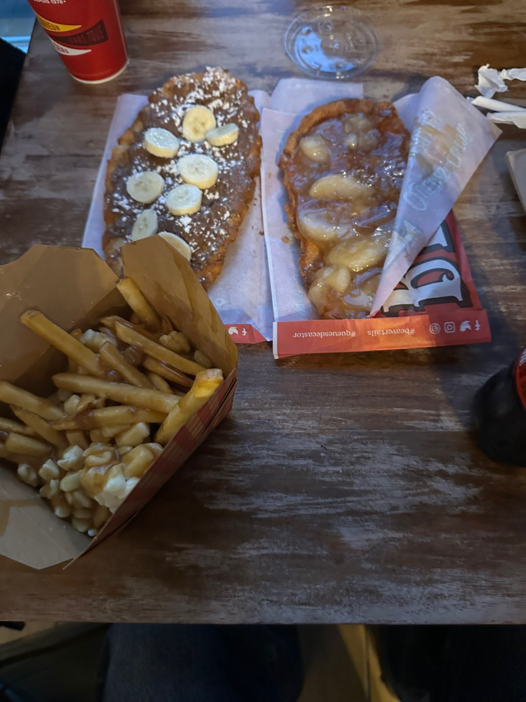 저희는 비버테일 2개, 푸틴, 레몬 슬러시 2잔 시켰어요.