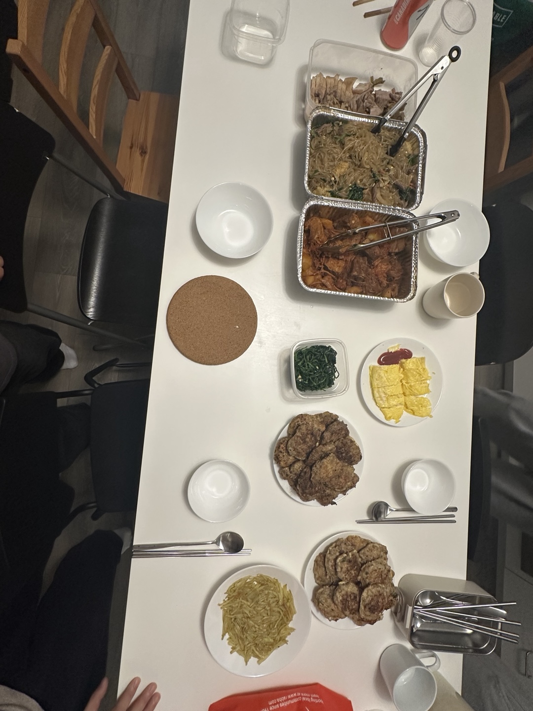 한 집에서 떡국, 다른 집에서 잡채와 갈비찜 그리고 전을 했구요. 마지막 집에서 보쌈을 만들어왔어요.