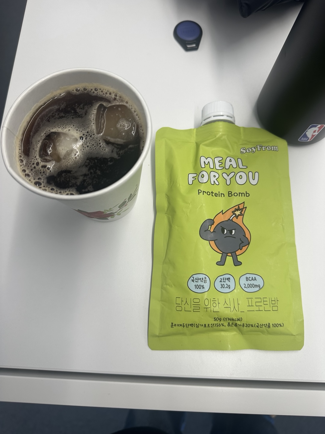 점심으로는 커피와 여자친구가 한국에서 챙겨준! 단백질 보충제로 해결했습니다~~